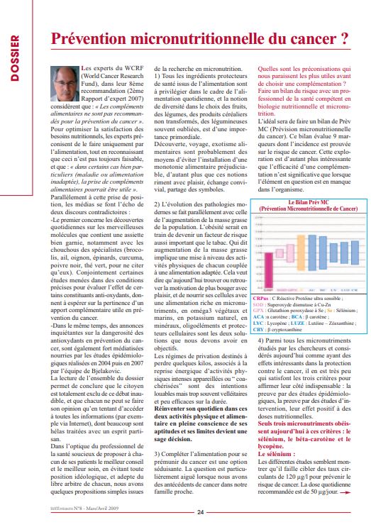 Prévention micronutritionnelle du cancer ? - Dr Didier Chos - Mars/Avril 2009