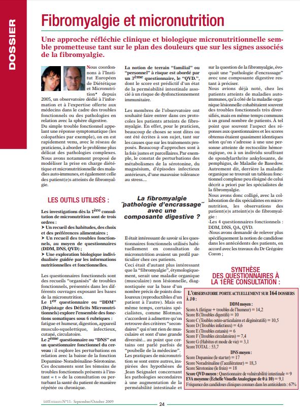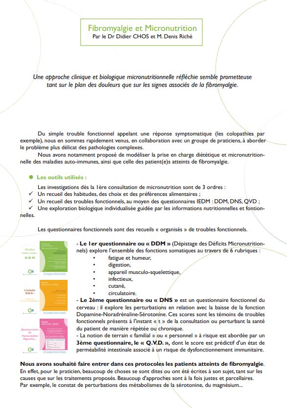Fibromyalgie et Micronutrition - Dr Didier Chos et Denis Riché (Responsable de l’observatoire Probiotiques à l’IEDM) - Septembre/Octobre 2009